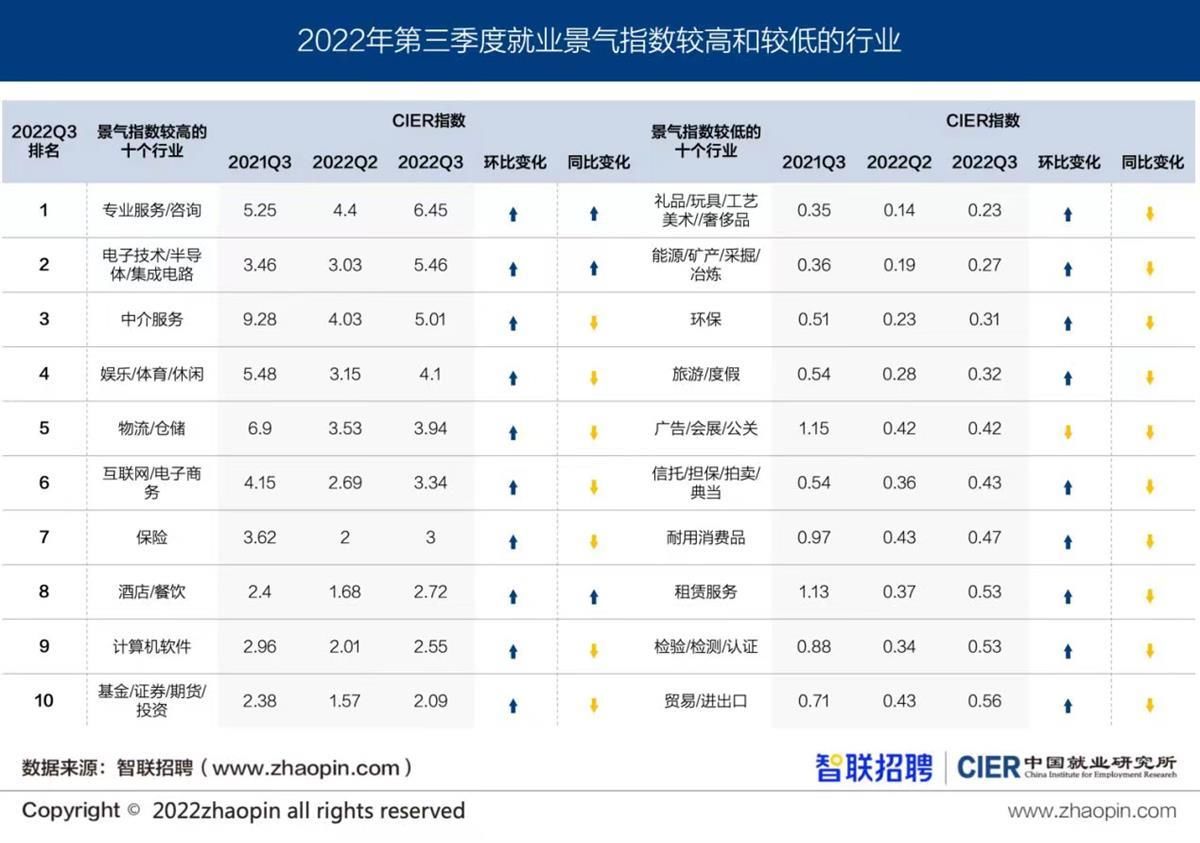 2022年三季度中国就业市场景气报告出炉,专业服